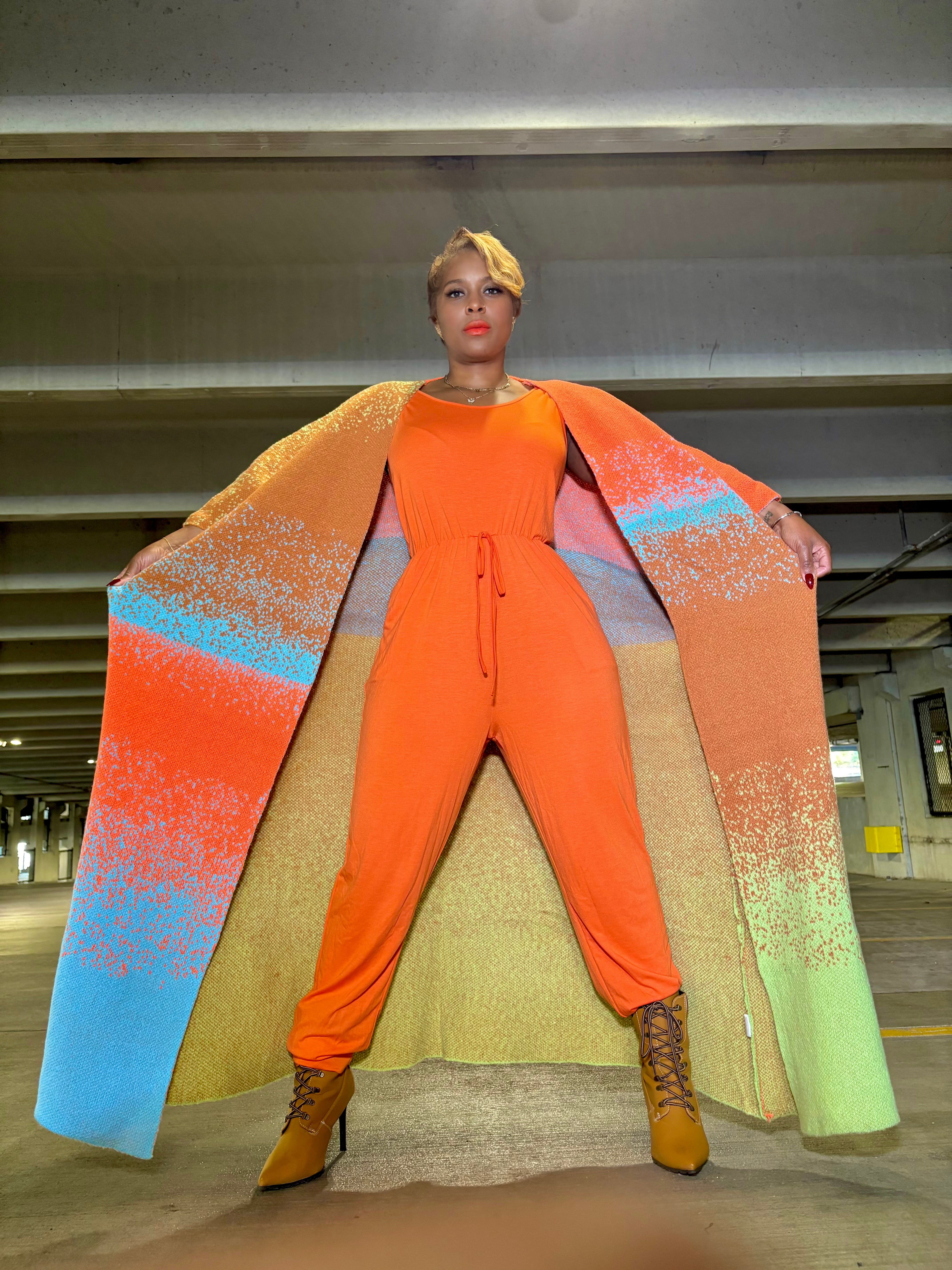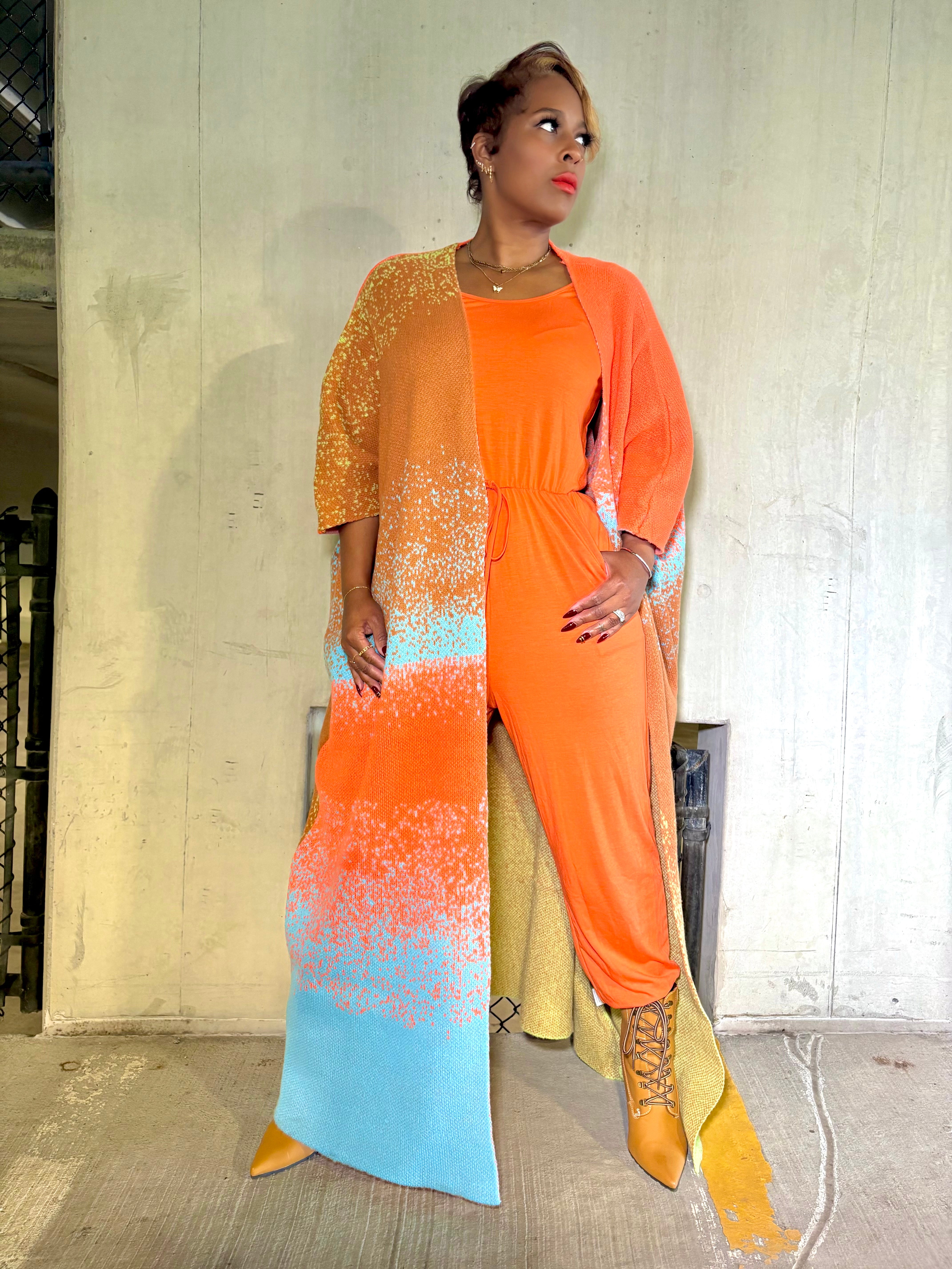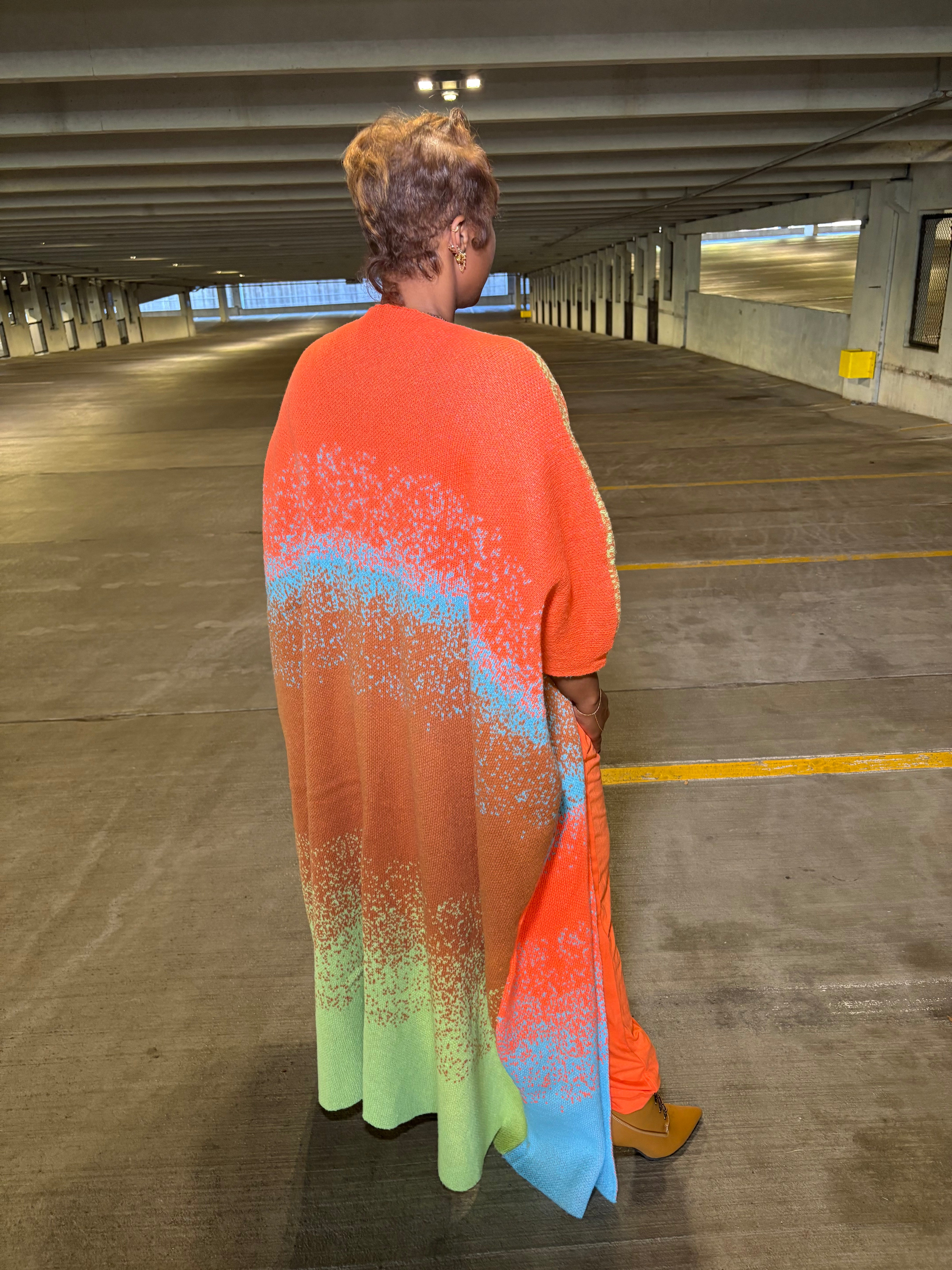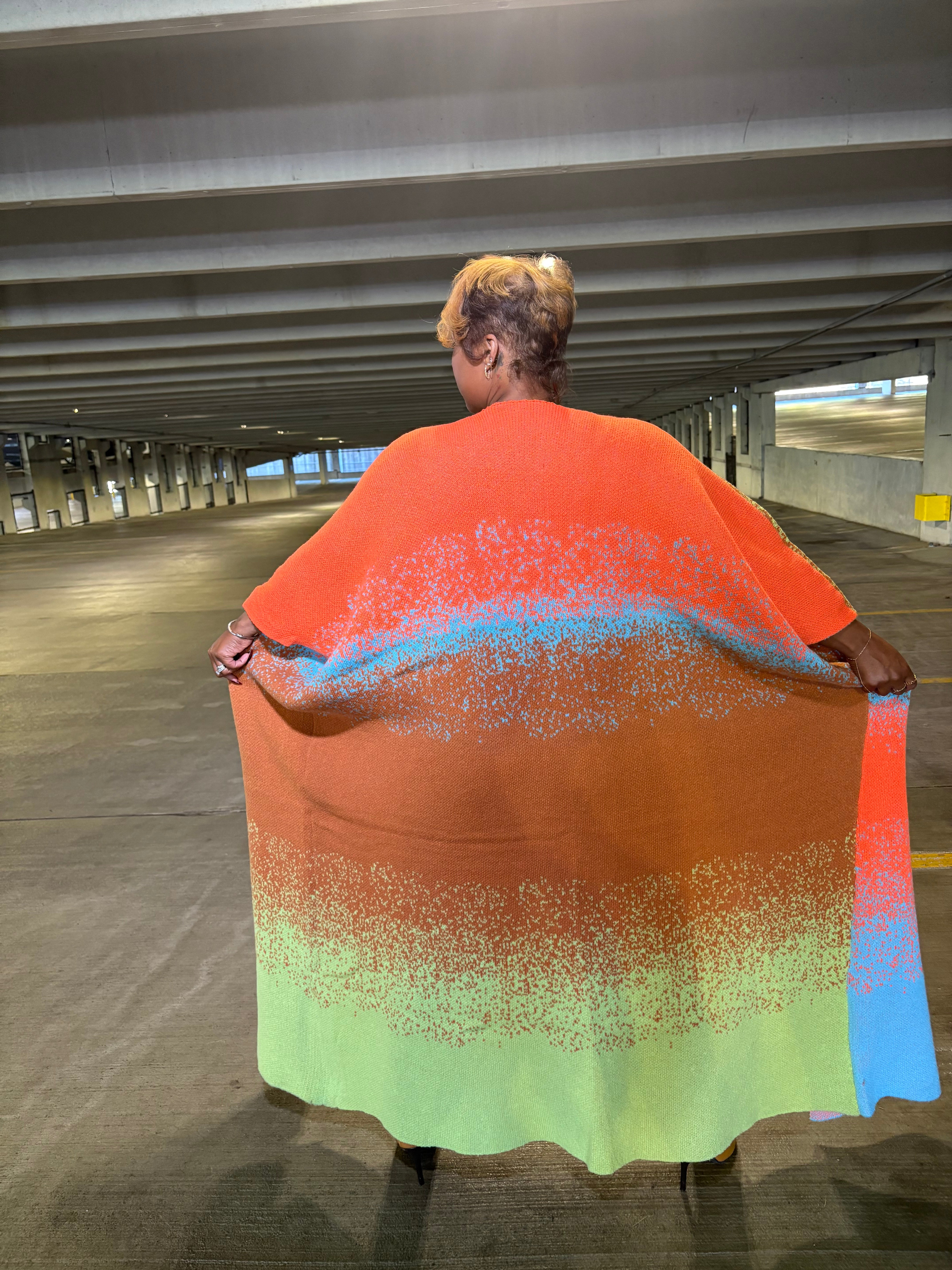 Elevate your layering game with the Gradient Goddess Kimono Cardigan— a transitional showstopper with ombre color flow, cozy drape, and fierce energy. Designed with a bold gradient pop of color, it layers like a cardigan but warms like a coat. Effortless, versatile, and statement-making, this piece flatters every curve with its relaxed batwing fit. it’s your go-to for fearless, chic layering—where cozy meets fierce.